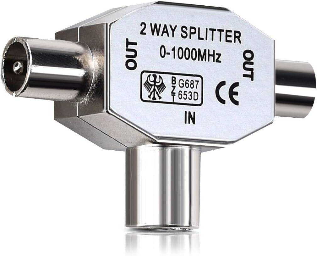 BestPlug A T Adaptateur répartiteur Antenne TV ou Radio 1 x Coaxial coaxial Coaxial femelle femelle vers 2 x prise coaxiale mâle en métal pour Analogique et Numérique Full HD TV Convient