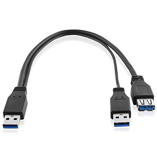 AAOTOKK Y Répartiteur Câble USB 3.0 A Femelle vers Double USB 3.0 A Mâle+USB 2.0 A Mâle Charge Supplémentaire et Transfert de Données Double USB Y Répartiteur Câble(30cm/12Pouces-F/Dual M)