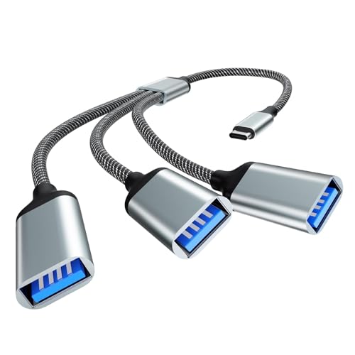 NEUTYPECHIC Câble Répartiteur USB C vers USB A, Adaptateur 3 en 1, Câble OTG USB Type C Mâle vers USB A 2.0 Femelle, avec Fonction de Transfert de Données, pour MacBook/Samsung/Pro/Mini/XPS/PC (Gris)