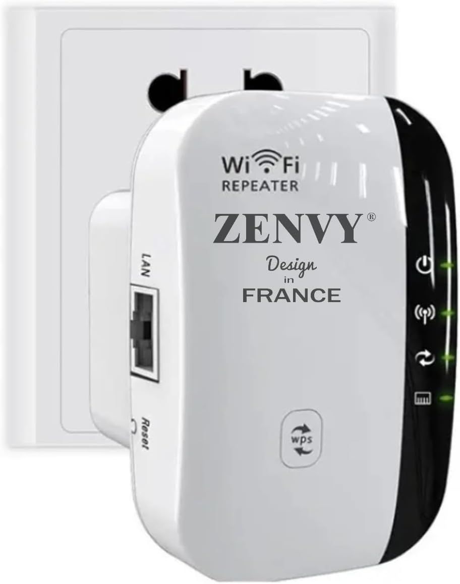 WiFi Repeater French Brand WiFi Booster 2.4 GHz 300Mbps Wireless Extender Network Signal Amplifier Have AP/RP and WPS Function, Compatible with All Internet Boxes