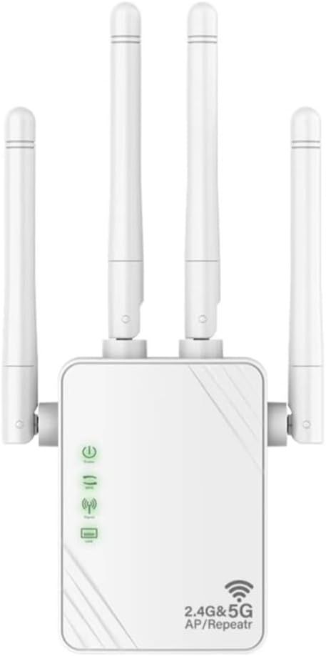 WiFi Repeater, Powerful WiFi Amplifier, 1200Mbps Powerful Wireless Dual Band WiFi Repeater with 4 Antennas, 5GHz & 2.4GHz WiFi Extender, WiFi Booster Compatible with All Routers