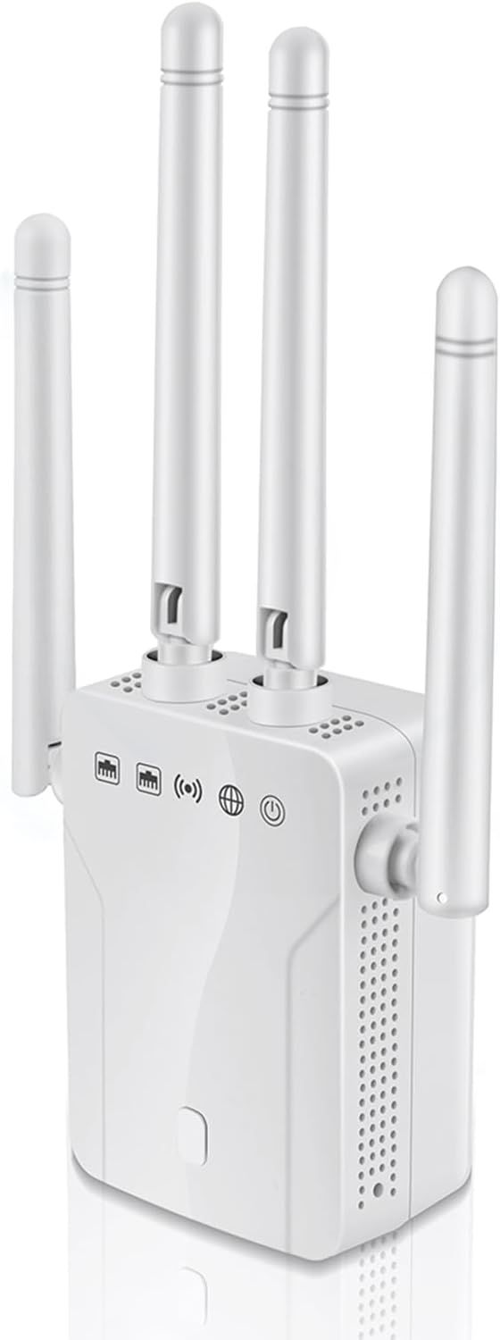 WiFi Repeater, Home Internet Wireless Extender, 4 Antennas, Wider Coverage, WiFi Signal Amplifier with, Ethernet Port, Compatible with Most Devices