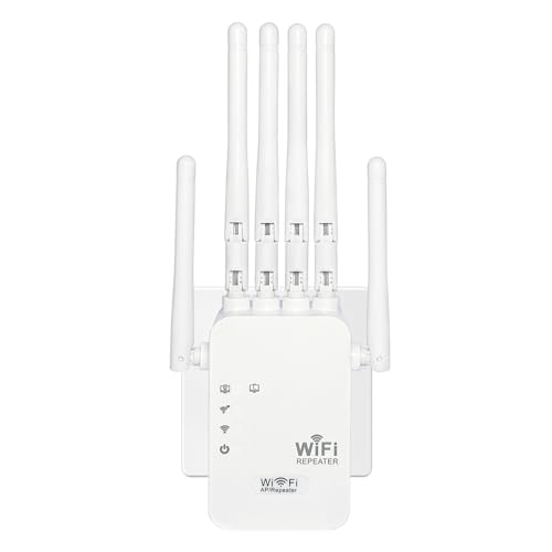 Répéteur WiFi, Repeteur WiFi Puissant,Amplificateur WiFi avec 6 Antennes,2 Ports LAN,Mode Répéteur & Routeur & AP,repeteur WiFi Exterieur Couverture WiFi de 300 m²,Facile à Installer-by44