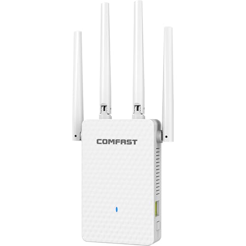 COMFAST Répéteur WiFi Puissant AC1200 Mbps avec Port Ethernet, 4 Antennes, WPS, Amplificateur WiFi Double Band, WR759AC
