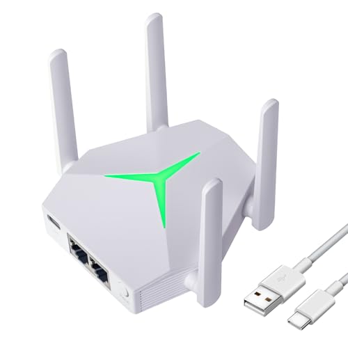 WONLINK Répéteur WiFi AC1200, Repeteur WiFi Puissant Double Bande Amplificateur WiFi avec Port LAN, 4 Antennes, WPS