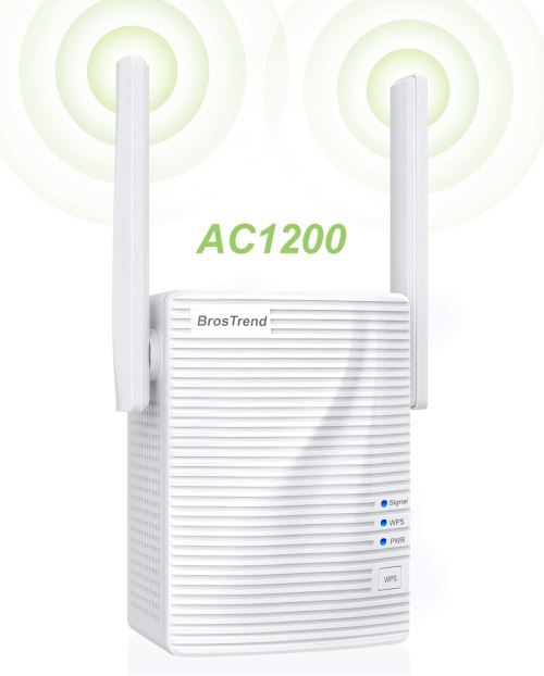 BrosTrend Répéteur WiFi AC 1200 Mb/s, Amplificateur WiFi, WiFi Extender, Booster WiFi , Couverture WiFi Etendue 5 GHz & 2,4 GHz Double Bande,