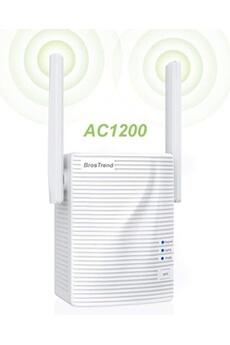BrosTrend Répéteur WiFi AC 1200 Mb/s, Amplificateur WiFi, WiFi Extender, Booster WiFi , Couverture WiFi Étendue 5 GHz & 2,4 GHz Double Bande, Compatible avec toutes les box internet, 1 Port Ethernet