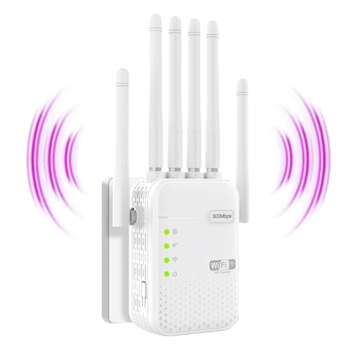 Répéteur WiFi,Amplificateur WiFi,repeteur WiFi Puissant avec 6 Antennes Puissantes,2 Ports LAN,Mode Répéteur & Routeur & AP,repeteur WiFi Exterieur Couverture WiFi de 300 m²,Facile à Installer
