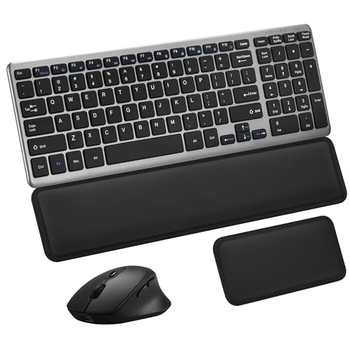 Ensemble clavier et souris silencieux sans fil avec repose-poignet magnétique ergonomique pour clavier et souris, soulage les douleurs de saisie, repose-poignet, support de main et bras, connexion