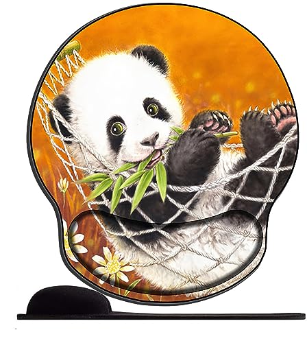 Tapis de Souris Ergonomique - Tapis de Souris Gamer avec Repose Poignet en Gel, avec Repose-Poignet Gaming Mouse Pad pour Ordinateur et Ordinateur Portable Animal Panda Roux