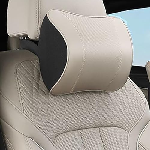 POKSRI 1P Cuir de Vache véritable appuie Tete Voiture,Repose Tete Voiture cale pour Conduire,Support de Coussin,Polyester d'origine vegetale,30x19cm,Remplissable&Reglable (Beige)