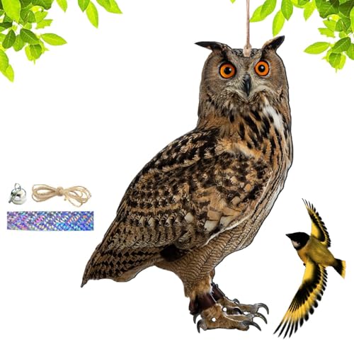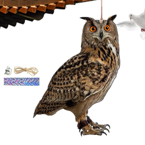 shuhauk Pendentif de protection de jardin pour oiseaux, repousse d'oiseaux, épouvantail repelle-nt, faux hibou, pendentif décoratif avec clochette, épouvantail réaliste en forme de chouette effrayant