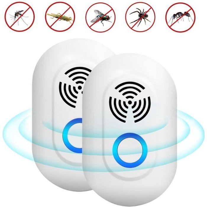 Répulsif Ultrason pour Anti Moustiques 2 Pack Prise Ultrason Anti Mouche Fourmi Cafard Araignées SourisRongeurs Insectes etc