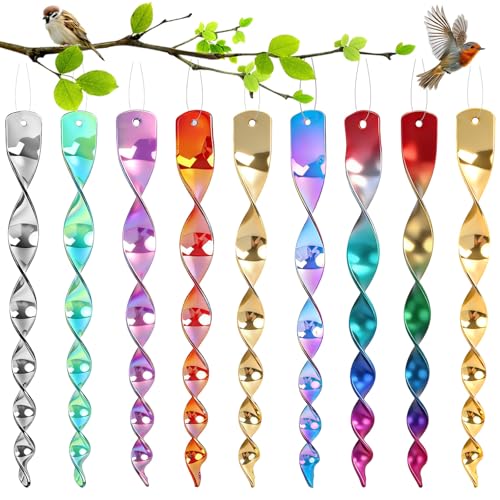 Repulsif Oiseaux, HAIYUU 8Pcs Effaroucheur Oiseaux Spirale Réfléchissante Anti Oiseaux, Répulsif Réfléchissants Spirale Oiseaux, 360 Degrés Repulsif Oiseaux pour Maison Jardin Balcon Fruitiers