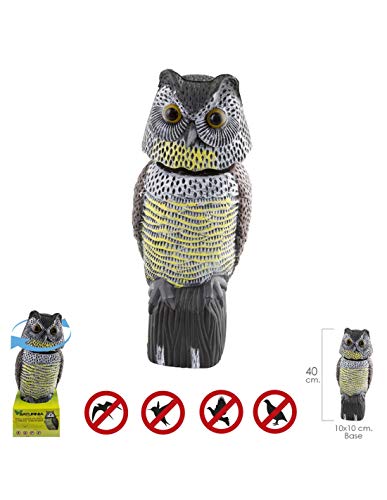 Home It® Effaroucheur Oiseaux Hibou avec tête rotative 360° – répulsif Oiseaux pour Jardin & Balcon, Yeux réalistes, Trou de Fixation, Plastique, 38,5 cm