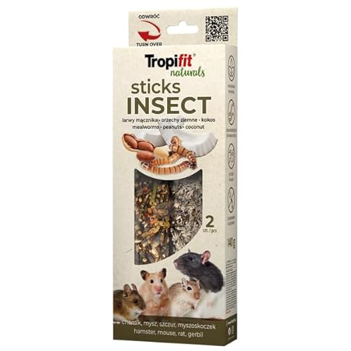 TROPIFIT Naturals Sticks Insect 140G | Flacon 100% Naturel avec des Larves de busserole et des Noix | Fioles Riches en protéines animales pour Hamster, Rat, Souris | sans Sucre ni Conservateur