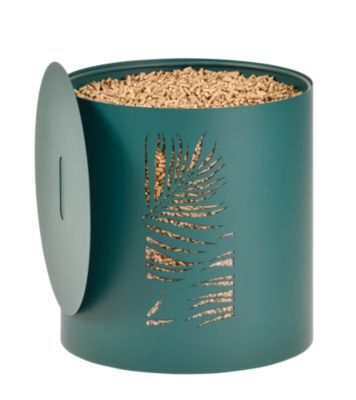 Réservoir à granulés avec couvercle en acier vert avec motif feuille de palmier Ø37.5 x H.41 cm, Dixneuf Florès