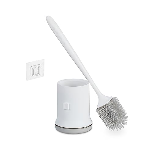 Relaxdays Brosse pour WC avec Support Mural, séchage Rapide, Toilettes, réservoir, sans perçage, Plastique, Blanc-Gris
