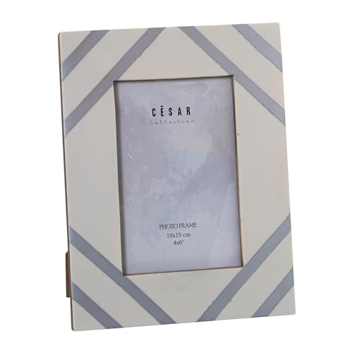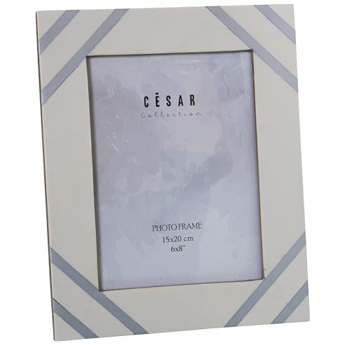 DRW Cadre photo en résine et bois pour photos de 10 x 15 cm en blanc et bleu 1,8 x 16,2 x 21,4 cm