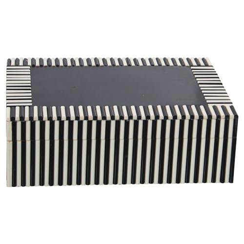 DRW Boîte à bijoux en résine et bois noir et blanc 13 x 18 x 6 cm