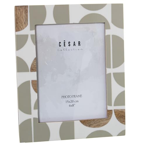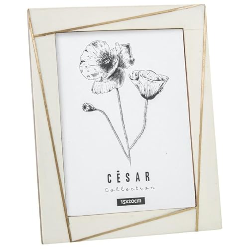 DRW Cadre photo en résine et bois avec base en bois blanc cassé et naturel, 20 x 15 x 1,5 cm