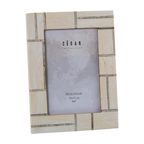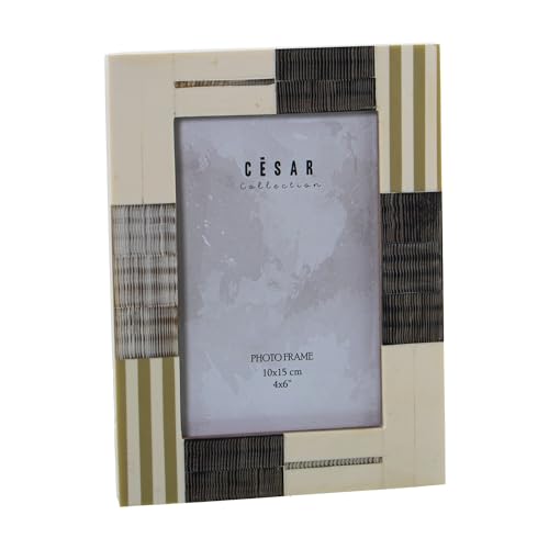 DRW Cadre photo en résine, os et bois pour photos de 10 x 15 cm, en naturel, 1,2 x 14,4 x 19,5 cm