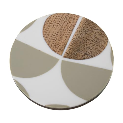 DRW Lot de 4 Porte-gobelets en résine et Bois Blanc et Naturel 10 x 10 x 0,7 cm
