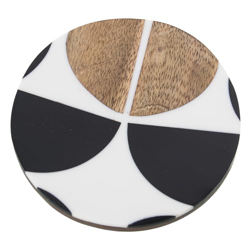 Lot de 4 Dessous de Verre en résine et Bois, Noir et Naturel, 10 x 10 x 0,8 cm