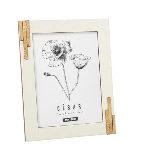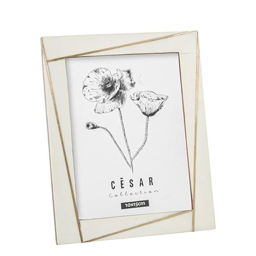 DRW Cadre photo pour photo de 10 x 15 cm en résine et bois avec base en bois blanc cassé et naturel, 15 x 10 x 1,5 cm