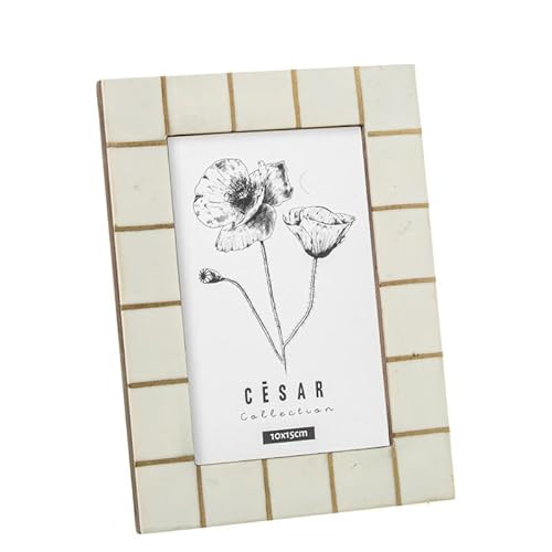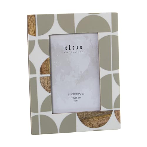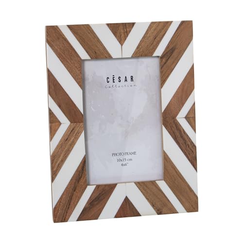 DRW Cadre photo en résine et bois avec base en bois blanc cassé et naturel, 15 x 10 x 1,5 cm