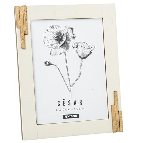 DRW Cadre photo pour photo de 15 x 20 cm en résine et bois avec base en bois blanc cassé et naturel, 20 x 15 x 1,5 cm