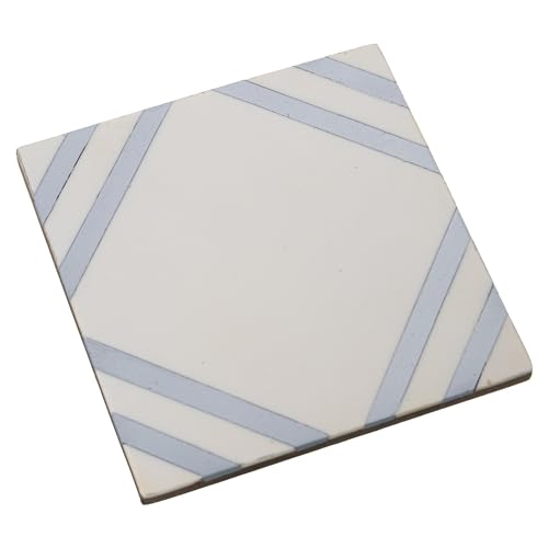 Lot de 4 Dessous de Verre en résine et Bois, Blanc et Bleu, 10 x 10 x 0,6 cm