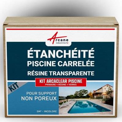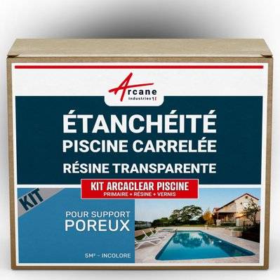 Résine d'étanchéité transparente pour piscine carrelée - KIT ARCACLEAR PISCINE - ARCANE INDUSTRIES - Transparent - kit 5 m² support poreux