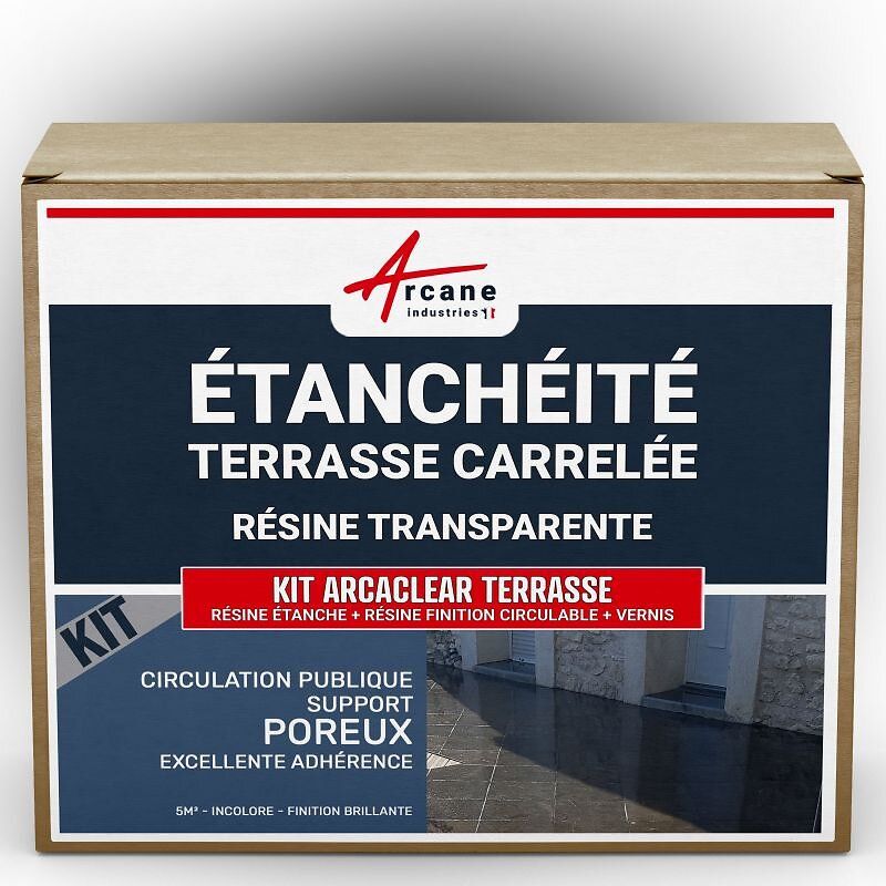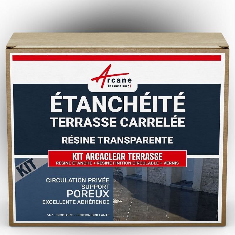 étanchéité transparente terrasse carrelée résine produit translucide carrelage balcon Transparent - Finition Brillante 5m², circulation publique support non poreux