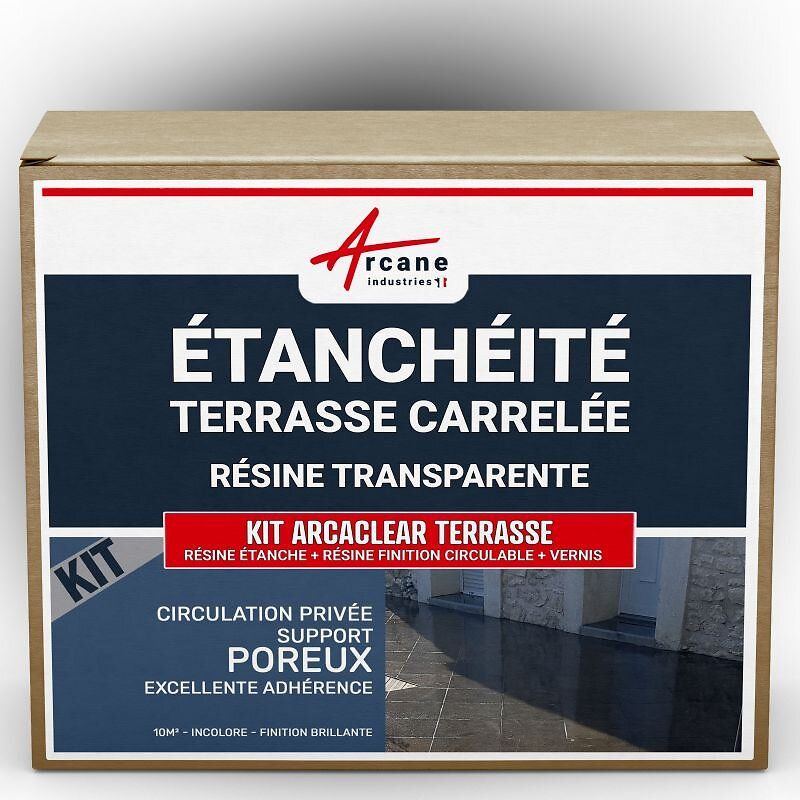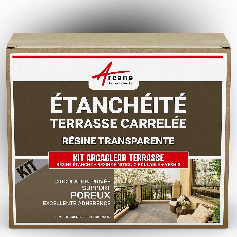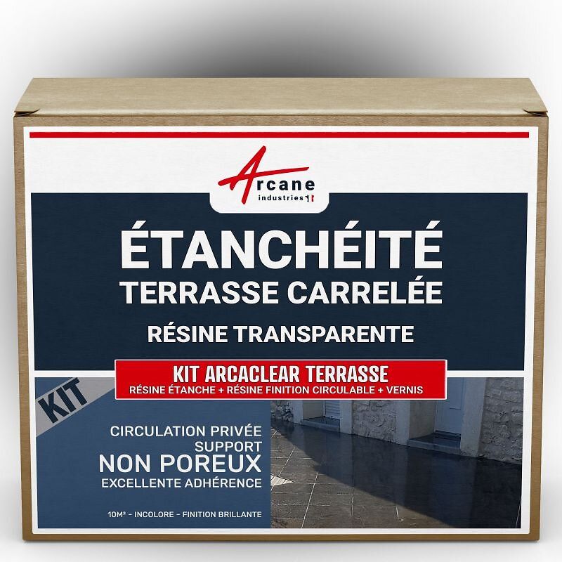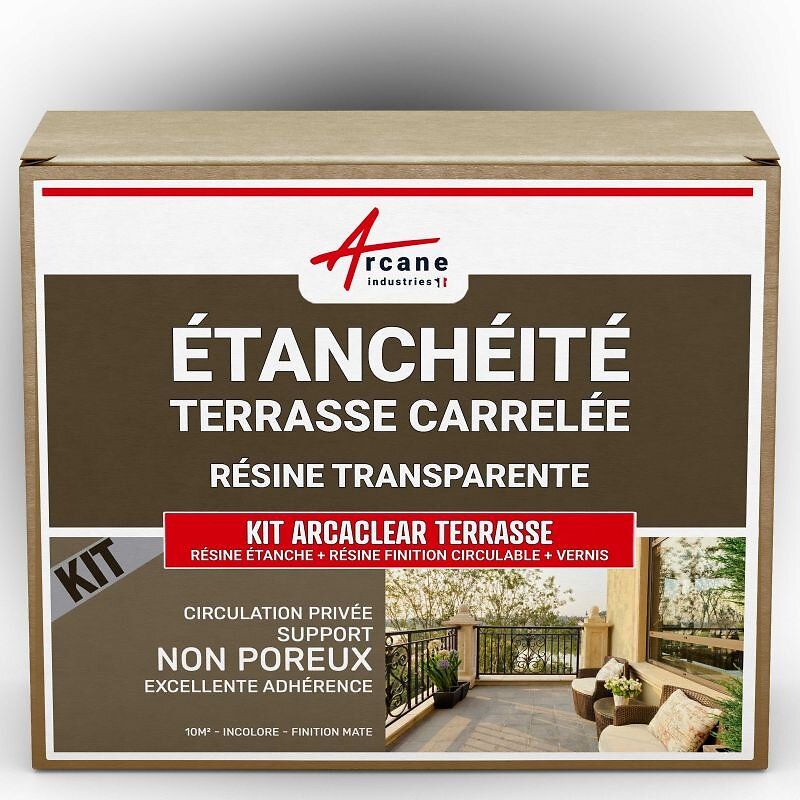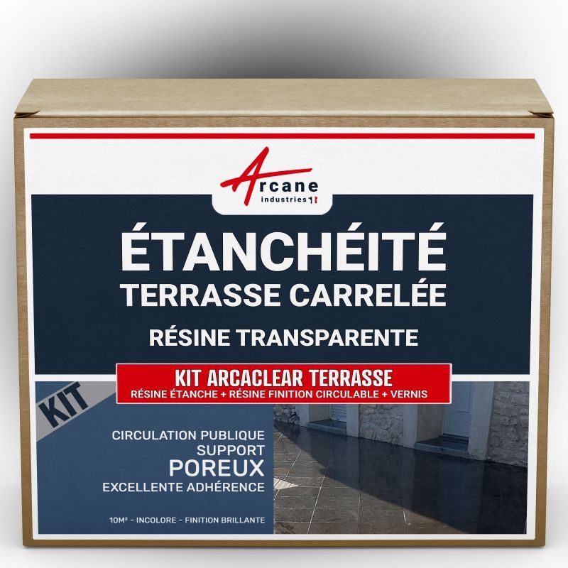 étanchéité transparente terrasse carrelée résine produit translucide carrelage balcon Transparent - Finition Mate 10m², circulation privée, support poreux