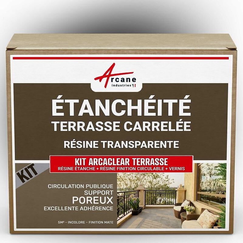 étanchéité transparente terrasse carrelée résine produit translucide carrelage balcon Transparent - Finition Mate 5m², circulation privée, support poreux