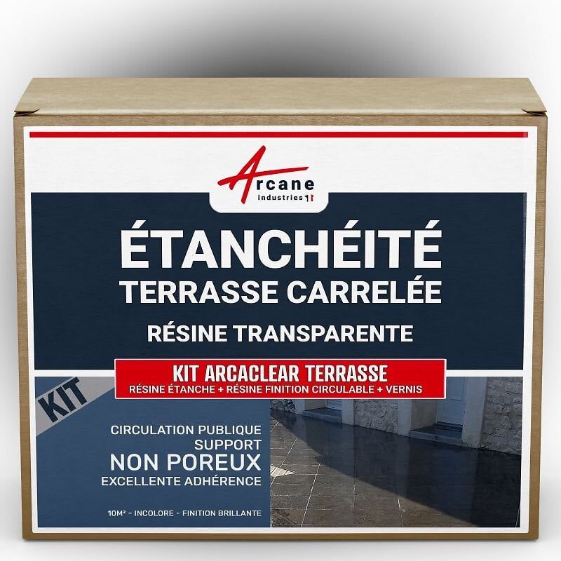 étanchéité transparente terrasse carrelée résine produit translucide carrelage balcon Transparent - Finition Brillante 10m², circulation publique support non poreux