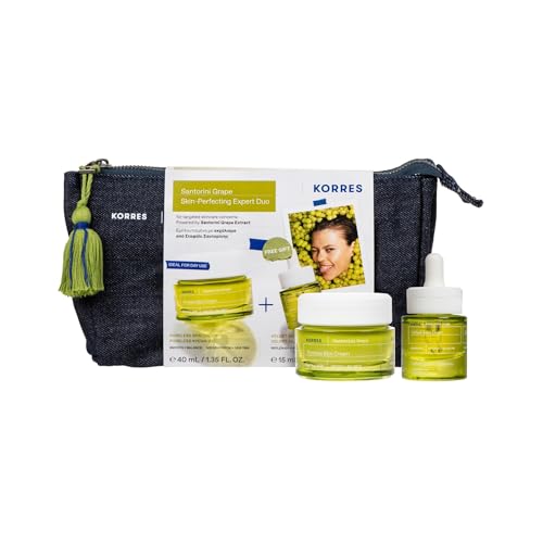 KORRES Santorini Grape Expert Duo raffermissant les pores, kit de crème de jour 40 ml et Elixir 15 ml pour une peau douce et un éclat éclatant, sans silicone et sans parabène, végétalien