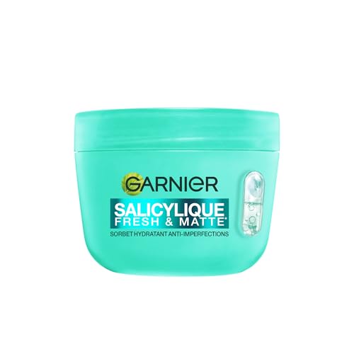 GARNIER – Salicylique – Crème Sorbet Hydratante Fresh & Matte - Crème Hydratante & Matifiante - Adoucit la Peau, Unifie le Teint, Réduit les Pores et l'Excès de Sébum - Tous Types de Peaux - 85 ml