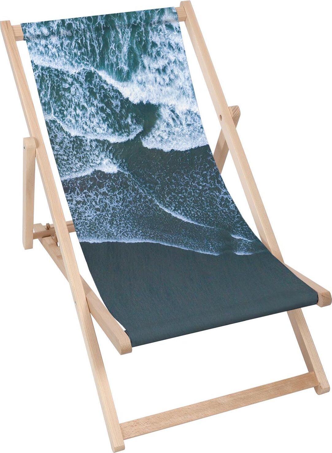 Dreamroots Chaise longue pliante bois, bois de hêtre jusqu'à 130 kg, Chaise longue pliante avec réglage de l'inclinaison du dossier en 3 positions, Restless Ocean