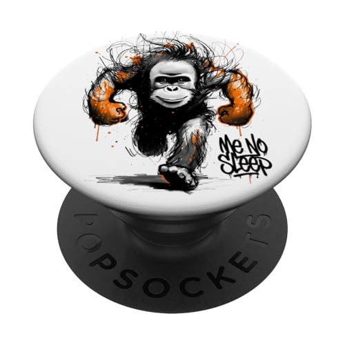Orange outan Gorille Singe Motivation No Sleep PopSockets PopGrip Adhésif