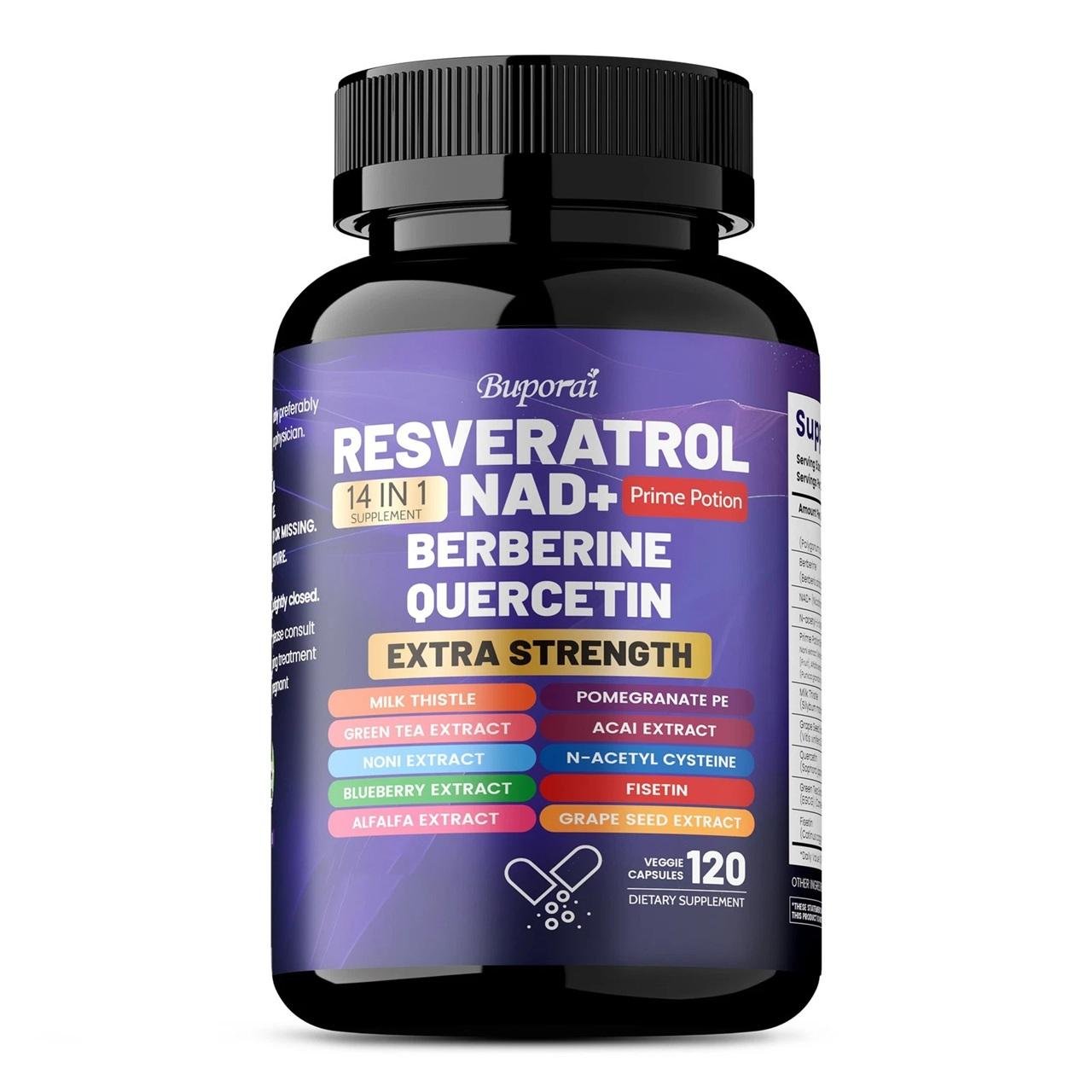 Resvératrol NAD + berbérine, quercétine (120 gélules) Complément alimentaire, anti-âge, peau, cerveau, nerfs, métabolisme, santé de la peau, énergie