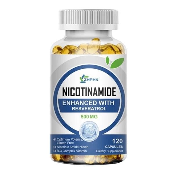 Nicotinamide 500 mg + resvératrol 100 mg (120 gélules) Complément alimentaire, anti-âge, rides, peau, santé de la peau, régénération, métabolisme