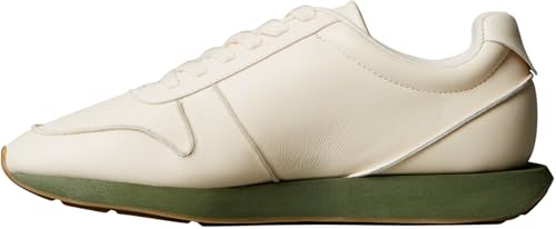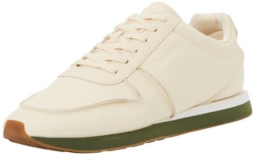 Calvin Klein Homme Retro Runner Lace Up LTH Pinch Ym0Ym01455 Low Top, White (Light Cashew/Medieval Forest), 47 EU