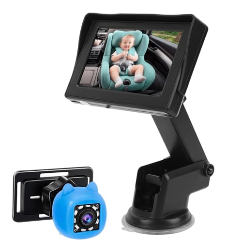 Generic Caméra de Voiture pour bébé avec Vision Nocturne, Rotation à 360° pour Face Arrière, Compatible avec Rétroviseur de Siège, Moniteur pour bébé de 4,3" pour Nourrissons, Enfants, Tout-Petits,