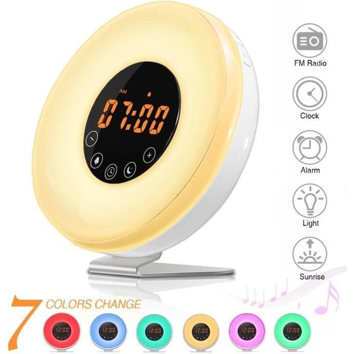 iFutniew Lampe de lever du soleil, réveil simulateur d'aube, lampe de chevet à changement de couleur pour chambre à coucher, blanc