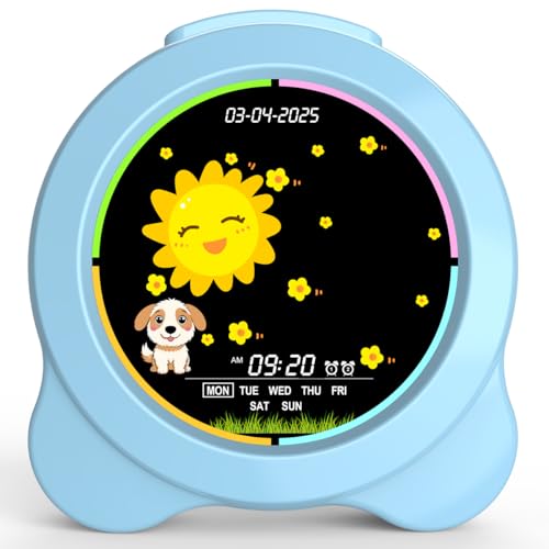 Sinoviwe Réveil pour Enfants Soleil et Lune Affichage LED avec Jour et Date OK pour réveil avec veilleuse pour Enfants, Cadeau d'apprentissage du Sommeil pour garçons et Filles (Bleu)