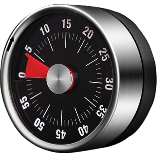 Youery Minuteur de Cuisine, Magnétique en Acier Inoxydable, Compte à Rebours Minuteur Mécanique 60 Minutes avec Réveil Puissant, pour la Cuisine Apprentissage Pâtisserie
