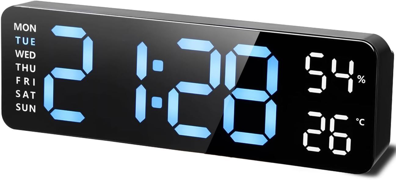 Réveil Numérique, Reveil Digital avec LED Lumières, Réveil Numérique Grand écran LCD pour Afficher la Date, l'Température,Minuterie, Alarmes, Support du Compte Positif, du Compte à Rebours, 3 Mode Lu