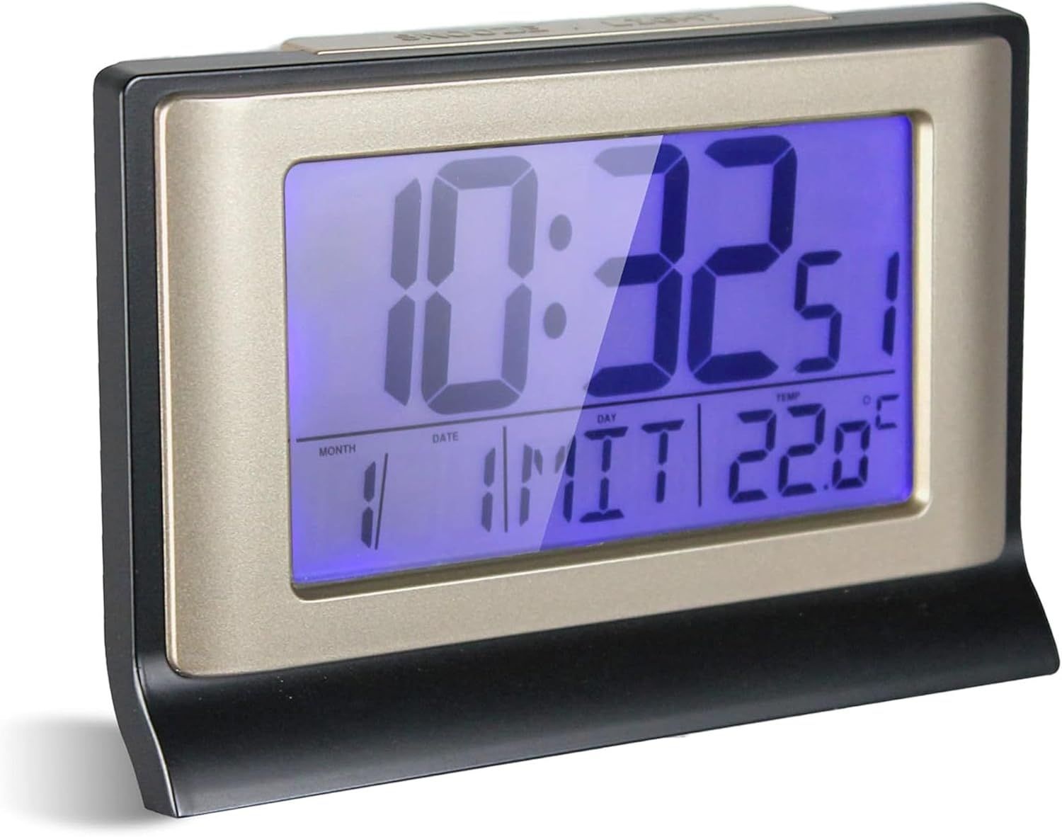 Réveil digital radio-piloté avec calendrier et thermomètre intégré